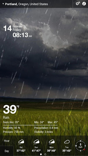 Aplicatia afiseaza scenele (soare, ploaie, ninsoare) exact cum este afara, afiseaza vremea si prognoza meteo pentru orice locatie din lume.